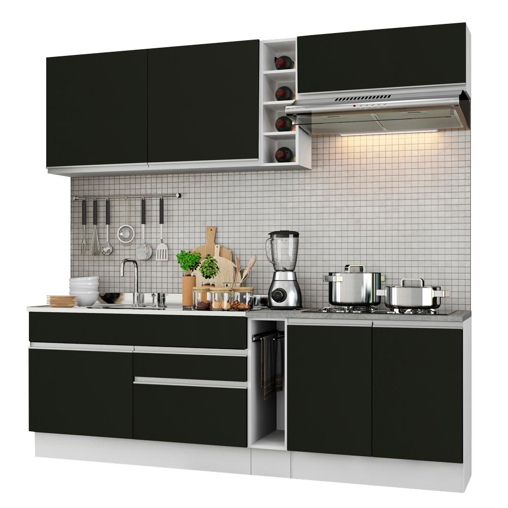 Cozinha Completa Madesa Parma com Armário e Balcão (Sem tampo e Pia) - Branco/Preto