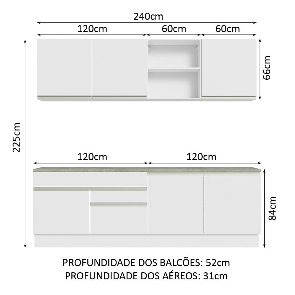 Armário de Cozinha Completa 240cm Branco Glamy Madesa 06