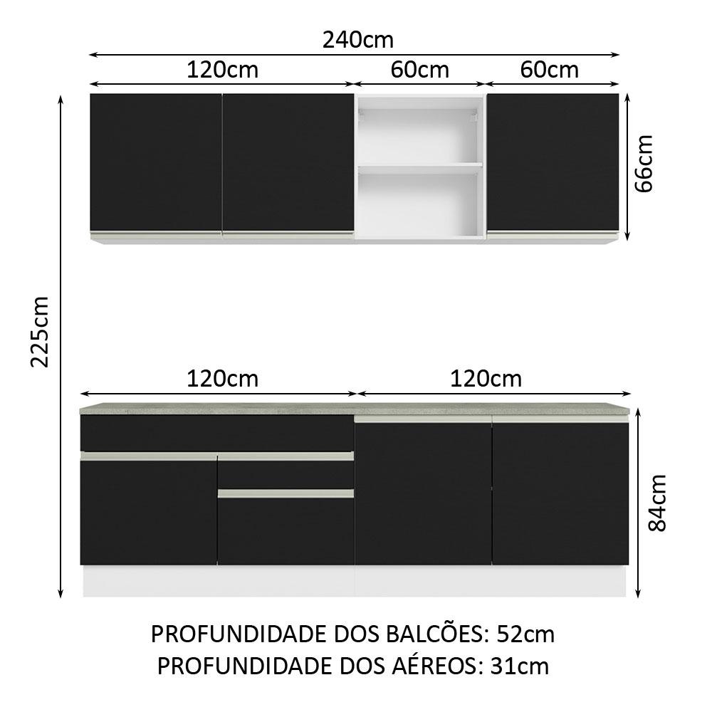 Armário de Cozinha Completa 240cm Branco/Preto Glamy Madesa 06