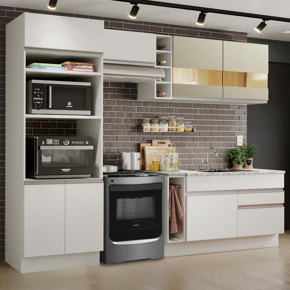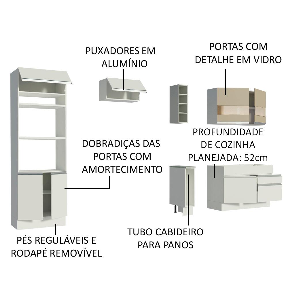 Cozinha Completa Madesa Jade com Armário e Balcão (Sem Tampo e Pia) - Branco/Branco/Crema