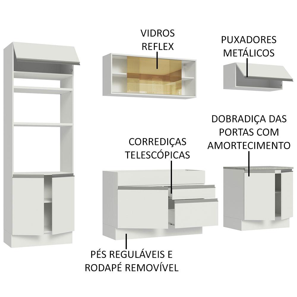 Cozinha Completa Madesa Glamy 270010 com Armário e Balcão (Sem Tampo e Pia) - Branco