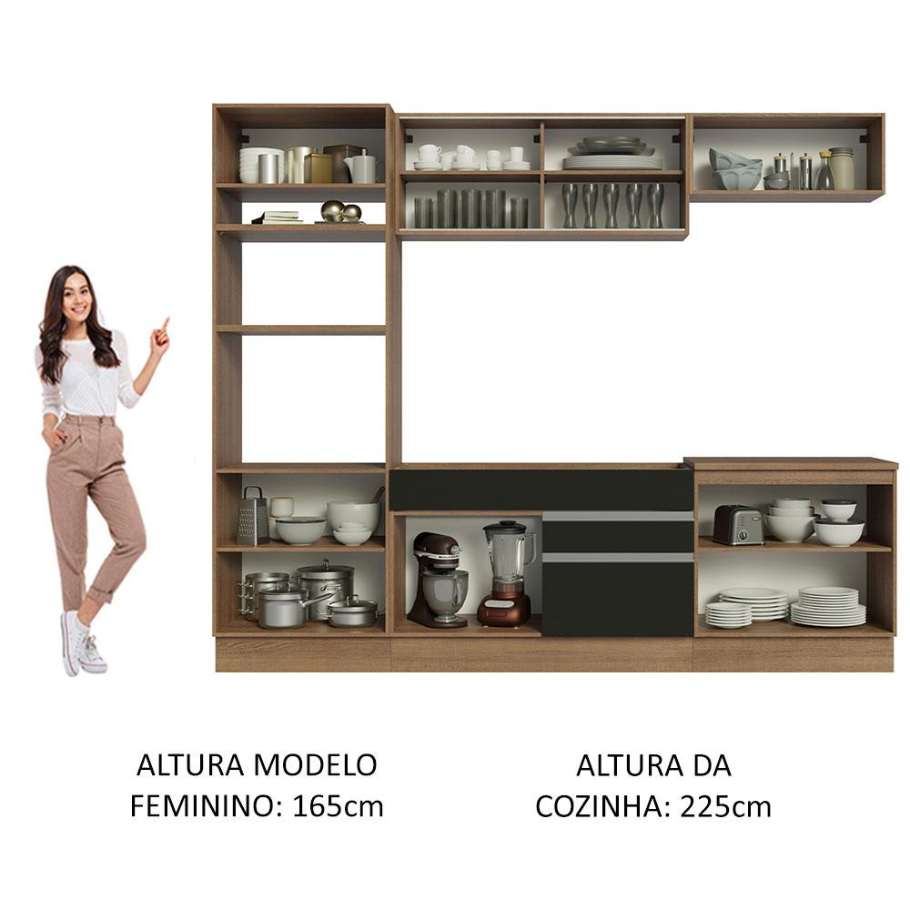Cozinha Completa Madesa Glamy 270010 com Armário e Balcão (Sem Tampo e Pia) - Rustic/Preto