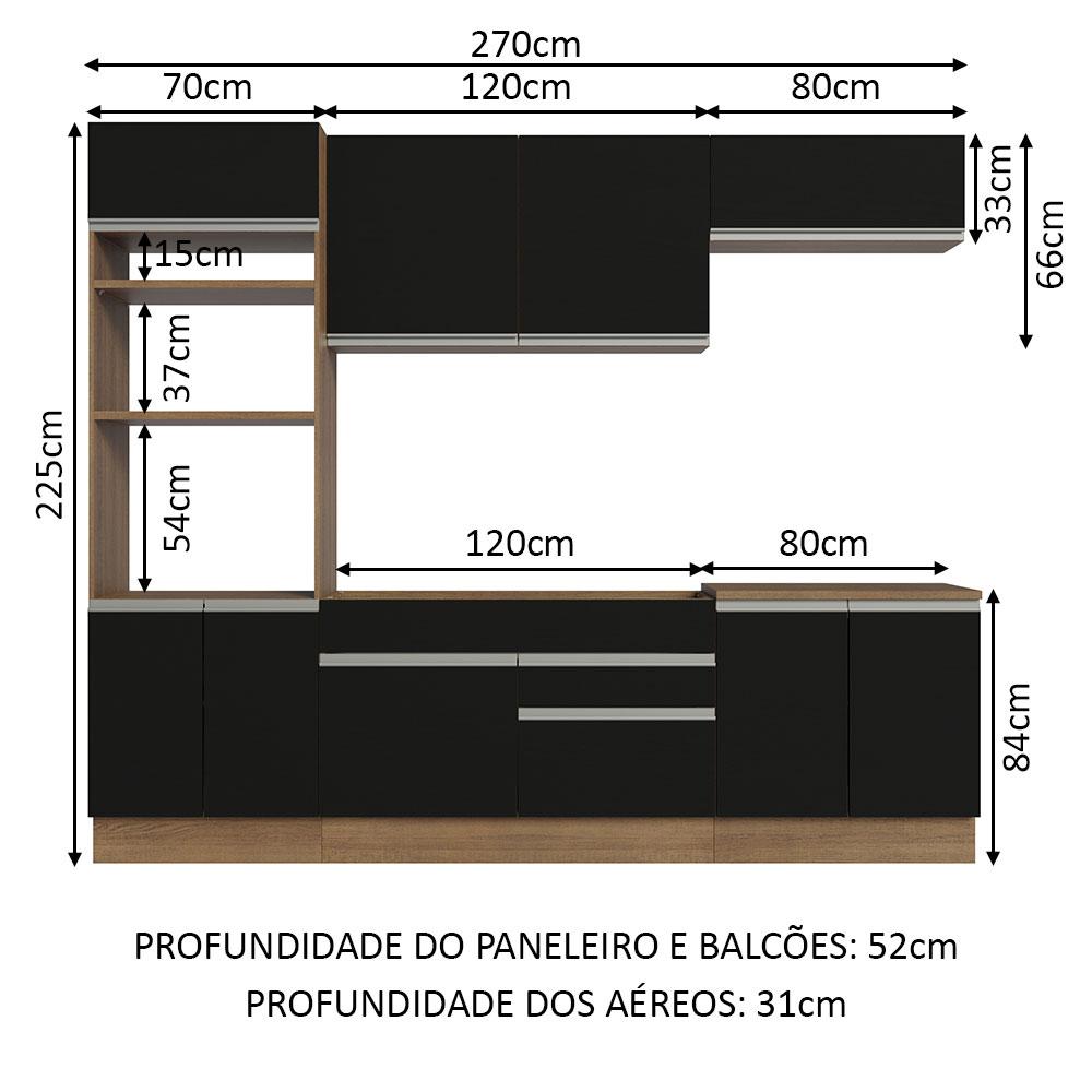 Armário de Cozinha Completa 270cm Rustic/Preto Glamy Madesa 13