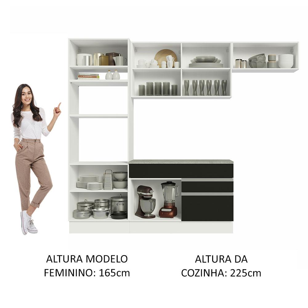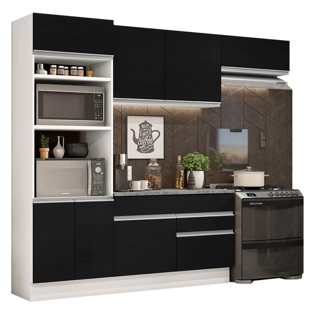 Armário de Cozinha Completa 270cm Branco/Preto Glamy Madesa 14