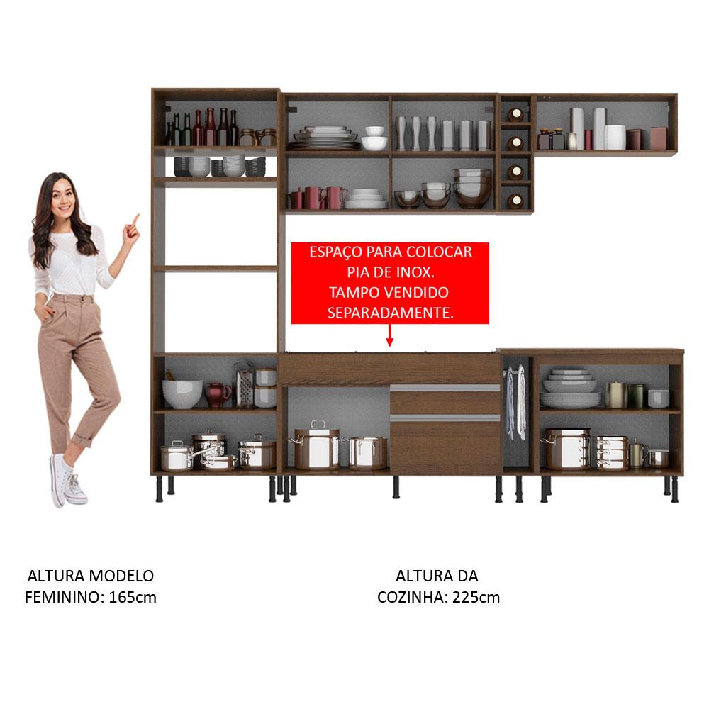 Cozinha Completa Madesa Vicenza com Armário e Balcão (Sem Tampo e Pia) - Rustic/Rustic/Crema