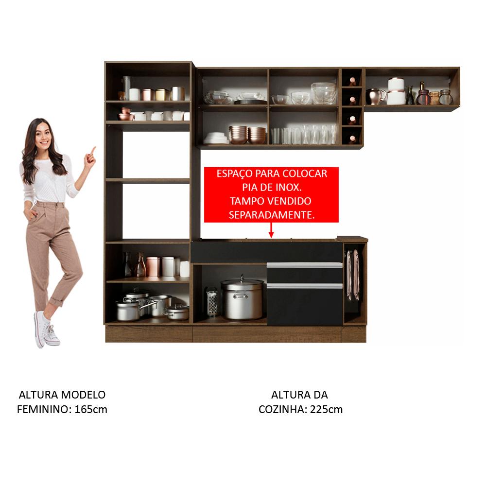 Cozinha Completa Madesa Safira com Armário e Balcão (Sem Tampo e Pia) - Rustic/Preto/Crema