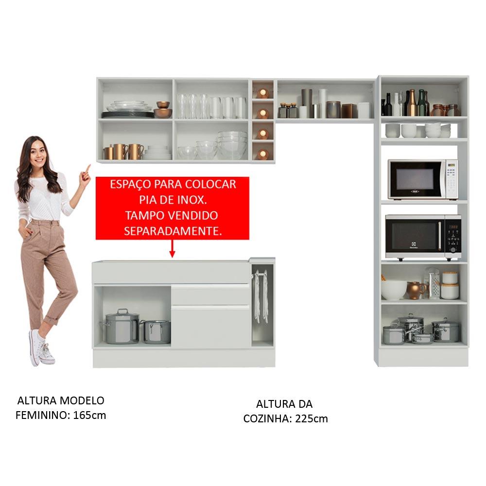 Cozinha Completa Madesa Cristal com Armário e Balcão (Sem Tampo e Pia) - Branco/Branco/Crema