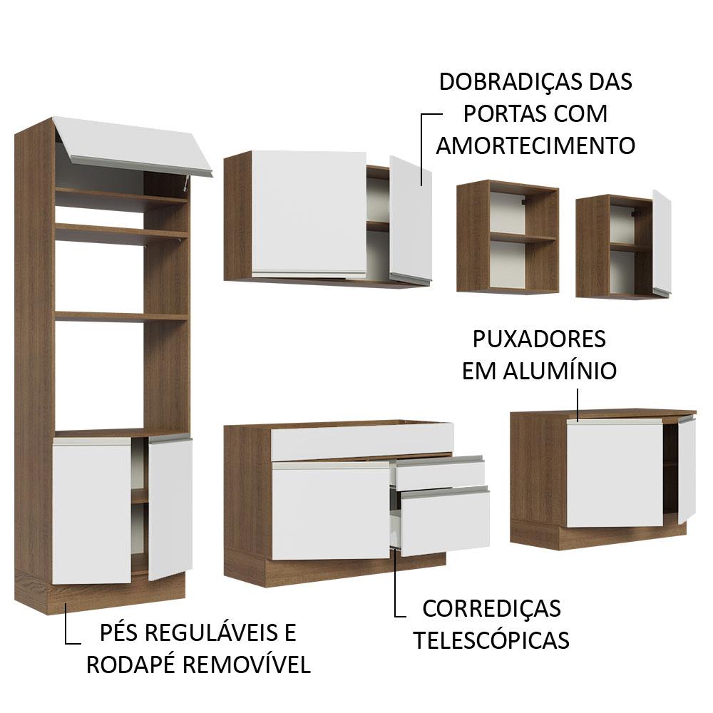 Armário de Cozinha Completa 310cm Rustic/Branco Glamy Madesa 02