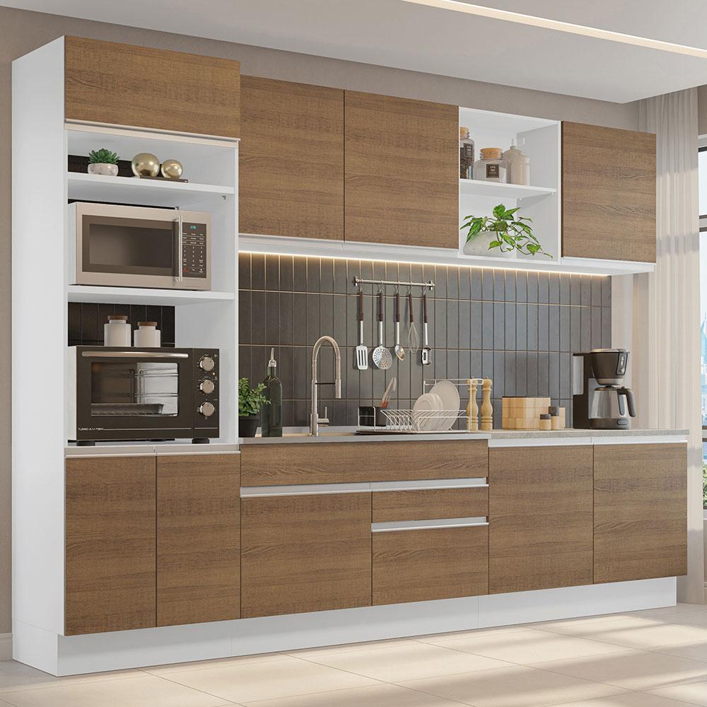 Armário de Cozinha Completa 310cm Branco/Rustic Glamy Madesa 02
