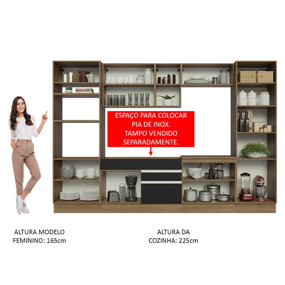 Armário de Cozinha Completa 330cm Rustic/Preto Glamy Madesa 03
