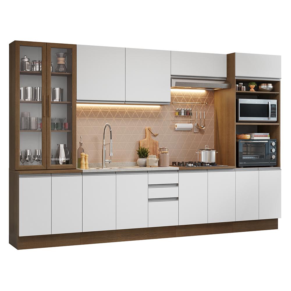 Armário de Cozinha Completa 340cm Rustic/Branco Glamy Madesa 01