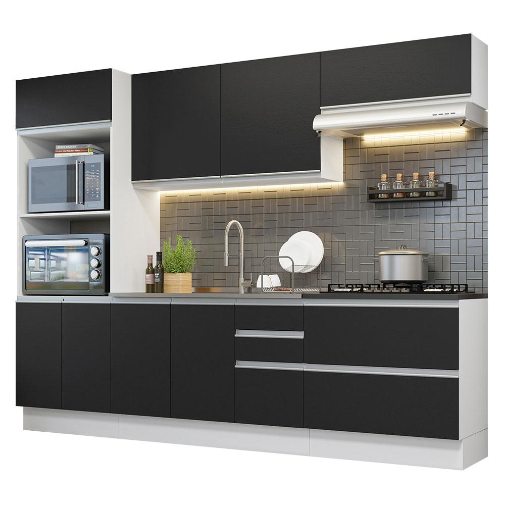 Armário de Cozinha Completa 100% MDF 270cm Branco/Preto Acordes Madesa 06