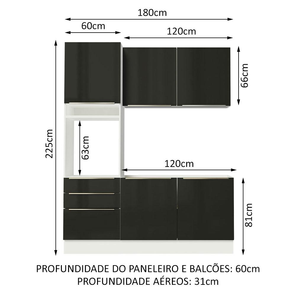 Armário de Cozinha Compacta 180cm Branco/Preto Lux Madesa 01