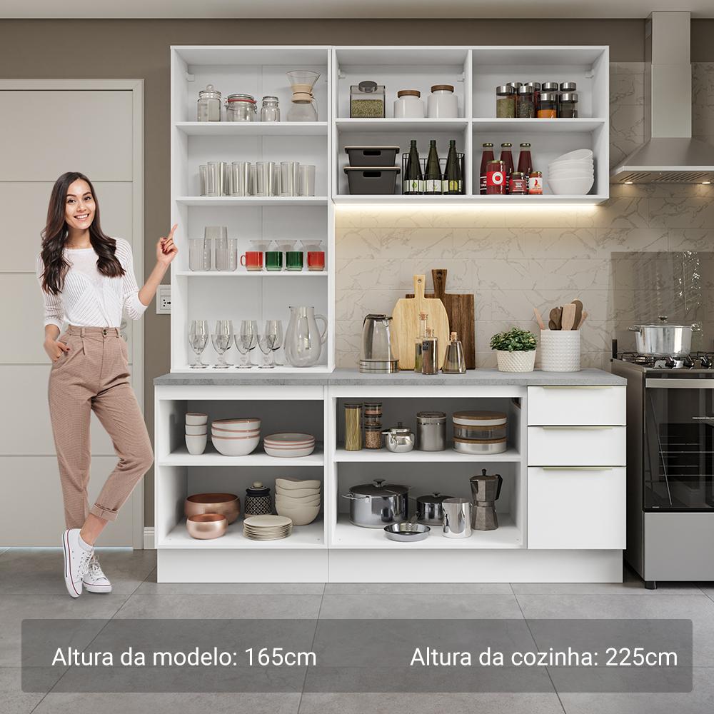 Armário de Cozinha Compacta 190cm Branco Veludo Lux Madesa 02