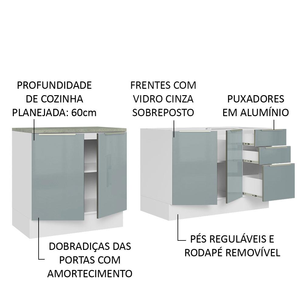 Kit com 2 Balcões de Cozinha Madesa Lux 4 Portas 3 Gavetas (Sem Tampo e Pia) Branco/Cinza