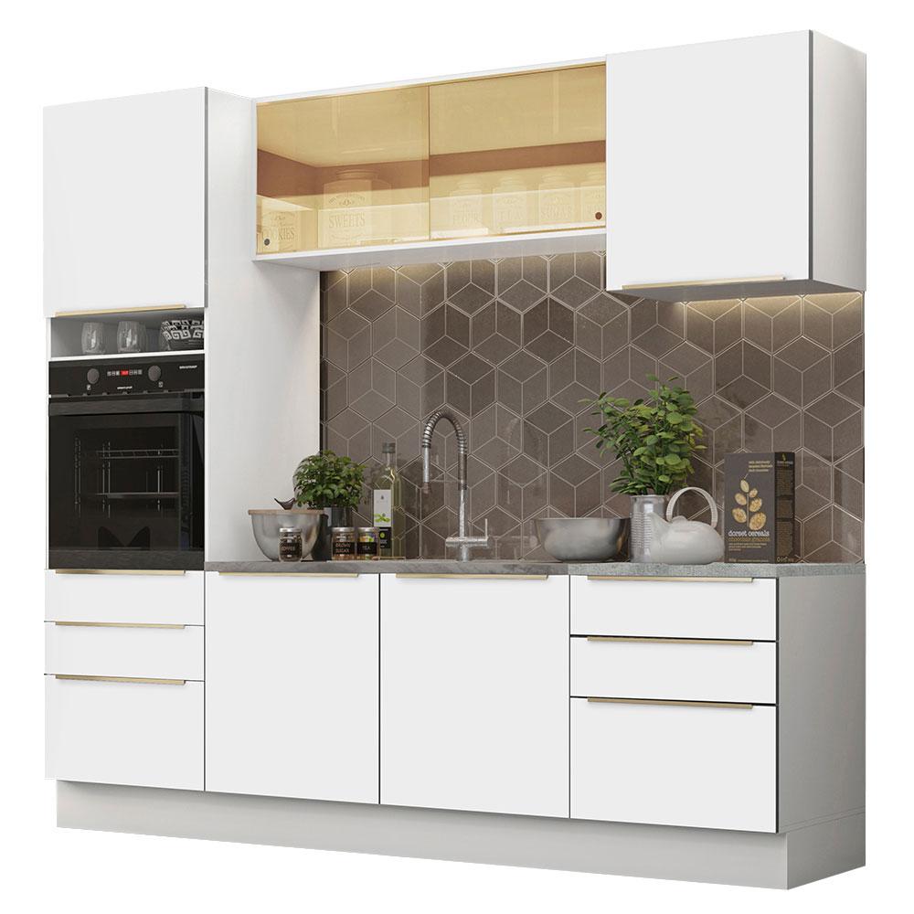 Cozinha Completa Madesa Lux 240002 com Armário e Balcão - Branco/Branco Veludo