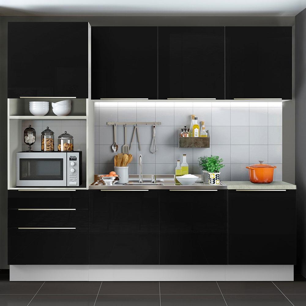 Sofisticação e elegância descrevem perfeitamente as cozinhas da linha Lux da Madesa!O grande diferencial são as portas e gavetas, que recebem um vidro preto aplicado, detalhe que traz muita beleza ao ambiente.Fabricada com itens de qualidade superior, possui corrediças telescópicas, dobradiças com amortecedores para o fechamento suave das portas e puxadores em alumínio, mais resistentes ao uso diário.Com ótimo espaço interno, possui profundidade de cozinha planejada: 60 cm. São diversas portas, gavetas, prateleiras e nichos, perfeitos para organizar todos os utensílios da cozinha.O balcão maior comporta pias de inox ou pedra no tamanho de 120 cm x 60 cm. O balcão menor acompanha tampo, que pode ser recortado para instalação de cooktop.Para completar, os pés são reguláveis em PVC, com rodapé removível para facilitar na hora de fazer a limpeza.Medidas totais da cozinha:- 240 cm de largura- 225 cm de altura- 60 cm de profundidade nos módulos inferiores e 31 cm nos aéreosO acabamento da estrutura é branco e as portas e frentes das gavetas são pretas. É feito em Pintura Poliéster com sete camadas de proteção resistentes a álcool, água e calor.Itens inclusos:- Uma (1) Torre-Quente com uma (1) porta, três (3) gavetas e dois (2) nichos- Um (1) Aéreo de 120 cm com duas (2) portas- Um (1) Balcão de pia de 120 cm com duas (2) portas (Não acompanha tampo para este balcão)- Um (1) Aéreo de 60 cm com uma (1) porta- Um (1) Balcão de 60 cm com uma (1) porta e tampo MoodCódigo do produto: GRLX24000373Obs.:- Imagens meramente ilustrativas, os eletros, o tampo da pia e a decoração não acompanham o produto- A Madesa não disponibiliza serviço de montagem- O produto segue com manual e todas as ferragens necessárias para a instalação1 – O produto é novo ou usado?R.: Todos os produtos da Madesa são novos, enviados da nossa fábrica diretamente para as casas de nossos clientes.2 – O produto vem montado? Se não, vocês realizam a montagem?R.: A Madesa não disponibiliza serviço de montagem. Todos os produtos seguem com manual de instalação e as ferragens necessárias. Alguns produtos possuem vídeo explicando o passo a passo da montagem.3 – Vocês possuem loja física? Posso retirar meu produto em mãos?R.: Não possuímos loja física, apenas loja virtual. Confira as opções de envio ao colocar o seu CEP.4 – Qual é o valor do envio? Posso pagar separadamente?R.: O valor do envio é calculado com base no peso e volume do produto, e no CEP de destino. Você pode calcular o valor e prazo de entrega no simulador.5 – A Madesa entrega em todo Brasil? Como é feita a entrega?R.: Sim, entregamos no Brasil inteiro através de transportadoras parceiras.6 – O produto acompanha Nota Fiscal?R.: Sim, todos os produtos são entregues com suas respectivas notas fiscais.7 – Os produtos possuem garantia?R.: Sim. A Madesa oferece 3 meses de garantia para defeitos de fabricação.A Madesa se dedica à sustentabilidade com várias iniciativas: temos uma usina própria para gerar energia que abastece uma de nossas fábricas. Selecionamos nossos fornecedores, priorizando aqueles que possuem um compromisso com a sustentabilidade e proteção do meio ambiente. Todo o plástico utilizado no setor produtivo é proveniente de reciclagem e as suas sobras são encaminhadas ao fornecedor que os recicla. Também investimos no desenvolvimento contínuo de nossos colaboradores e em ações educacionais que beneficiem a comunidade.