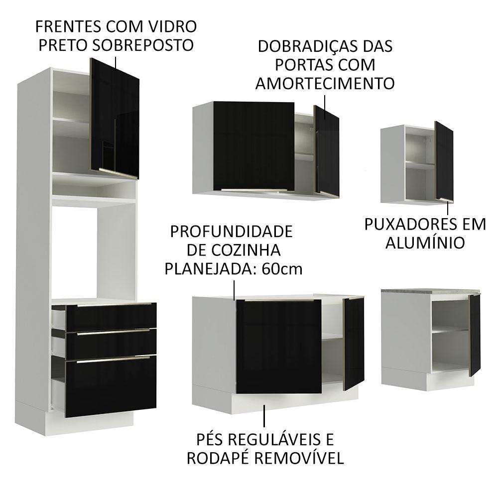 Cozinha Completa Madesa Lux com Armário e Balcão 7 Portas 3 Gavetas - Branco/Preto