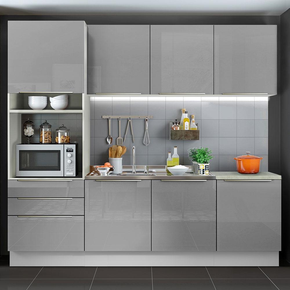 Sofisticação e elegância descrevem perfeitamente as cozinhas da linha Lux da Madesa!O grande diferencial são as portas e gavetas, que recebem um vidro cinza aplicado, detalhe que traz muita beleza ao ambiente.Fabricada com itens de qualidade superior, possui corrediças telescópicas, dobradiças com amortecedores para o fechamento suave das portas e puxadores em alumínio, mais resistentes ao uso diário.Com ótimo espaço interno, possui profundidade de cozinha planejada: 60 cm. São diversas portas, gavetas, prateleiras e nichos, perfeitos para organizar todos os utensílios da cozinha.O balcão maior comporta pias de inox ou pedra no tamanho de 120 cm x 60 cm. O balcão menor acompanha tampo, que pode ser recortado para instalação de cooktop.Para completar, os pés são reguláveis em PVC, com rodapé removível para facilitar na hora de fazer a limpeza.Medidas totais da cozinha:- 240 cm de largura- 225 cm de altura- 60 cm de profundidade nos módulos inferiores e 31 cm nos aéreosO acabamento da estrutura é branco e o das portas e frentes das gavetas é cinza. É feito em Pintura Poliéster com sete camadas de proteção resistentes a álcool, água e calor.Itens inclusos:- Uma (1) Torre-Quente com uma (1) porta, três (3) gavetas e dois (2) nichos- Um (1) Aéreo de 120 cm com duas (2) portas- Um (1) Balcão de pia de 120 cm com duas (2) portas (Não acompanha tampo para este balcão)- Um (1) Aéreo de 60 cm com uma (1) porta- Um (1) Balcão de 60 cm com uma (1) porta e tampo MoodCódigo do produto: GRLX2400039RObs.:- Imagens meramente ilustrativas, os eletros, o tampo da pia e a decoração não acompanham o produto- A Madesa não disponibiliza serviço de montagem- O produto segue com manual e todas as ferragens necessárias para a instalação1 – O produto é novo ou usado?R.: Todos os produtos da Madesa são novos, enviados da nossa fábrica diretamente para as casas de nossos clientes.2 – O produto vem montado? Se não, vocês realizam a montagem?R.: A Madesa não disponibiliza serviço de montagem. Todos os produtos seguem com manual de instalação e as ferragens necessárias. Alguns produtos possuem vídeo explicando o passo a passo da montagem.3 – Vocês possuem loja física? Posso retirar meu produto em mãos?R.: Não possuímos loja física, apenas loja virtual. Confira as opções de envio ao colocar o seu CEP.4 – Qual é o valor do envio? Posso pagar separadamente?R.: O valor do envio é calculado com base no peso e volume do produto, e no CEP de destino. Você pode calcular o valor e prazo de entrega no simulador.5 – A Madesa entrega em todo Brasil? Como é feita a entrega?R.: Sim, entregamos no Brasil inteiro através de transportadoras parceiras.6 – O produto acompanha Nota Fiscal?R.: Sim, todos os produtos são entregues com suas respectivas notas fiscais.7 – Os produtos possuem garantia?R.: Sim. A Madesa oferece 3 meses de garantia para defeitos de fabricação.A Madesa se dedica à sustentabilidade com várias iniciativas: temos uma usina própria para gerar energia que abastece uma de nossas fábricas. Selecionamos nossos fornecedores, priorizando aqueles que possuem um compromisso com a sustentabilidade e proteção do meio ambiente. Todo o plástico utilizado no setor produtivo é proveniente de reciclagem e as suas sobras são encaminhadas ao fornecedor que os recicla. Também investimos no desenvolvimento contínuo de nossos colaboradores e em ações educacionais que beneficiem a comunidade.