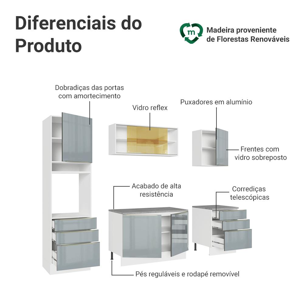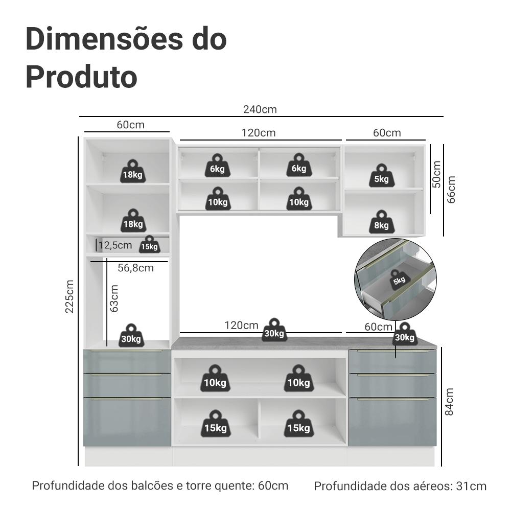 Armário de Cozinha Completa 240cm Branco/Cinza Lux Madesa 08
