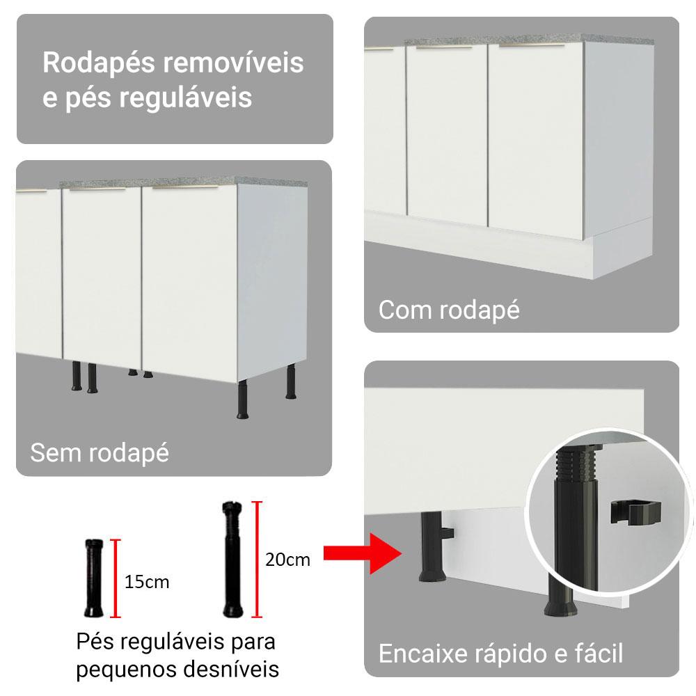 Armário de Cozinha Completa 240cm Branco Veludo Lux Madesa 08