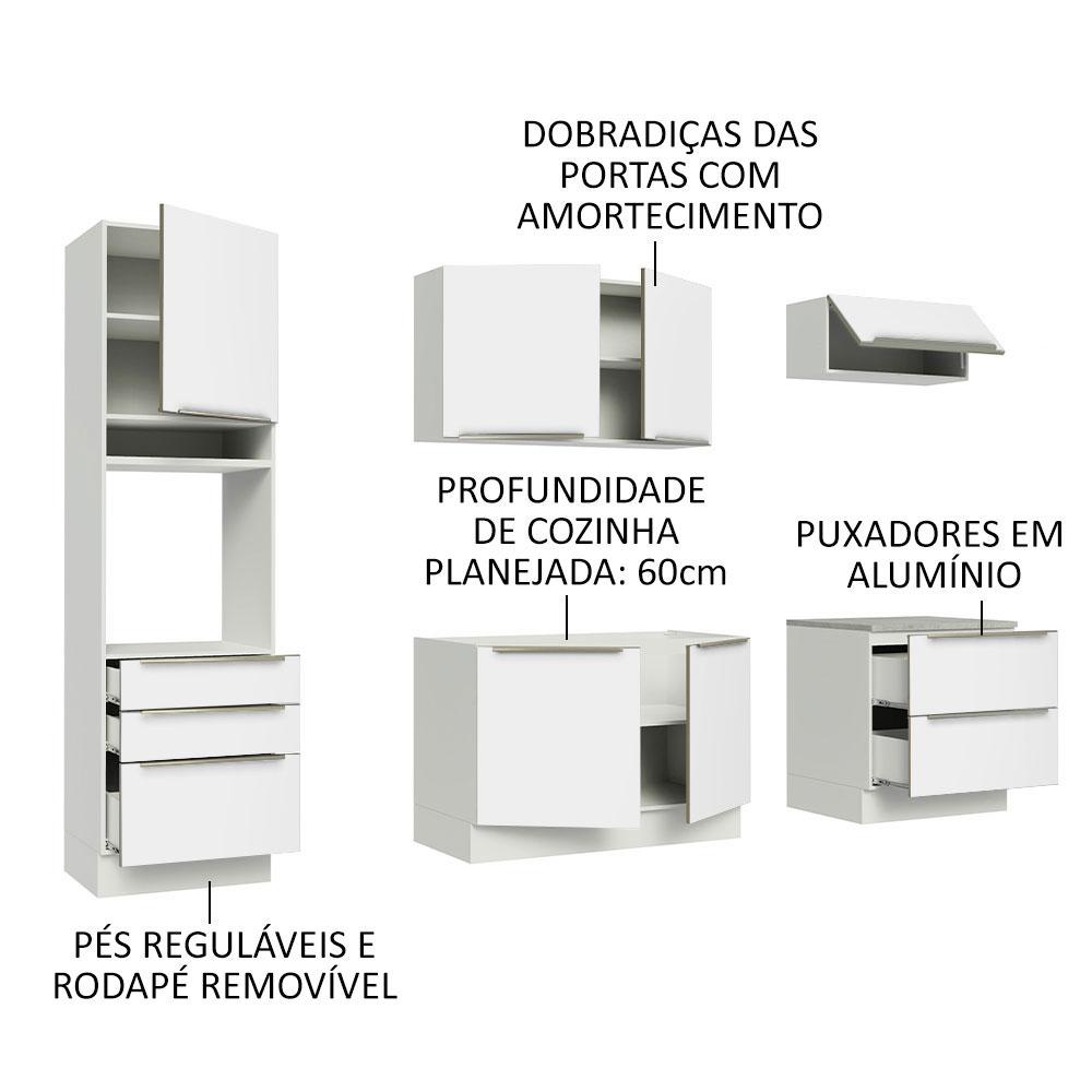 Cozinha Completa Madesa Lux com Armário e Balcão 6 Portas 5 Gavetas - Branco/Branco Veludo