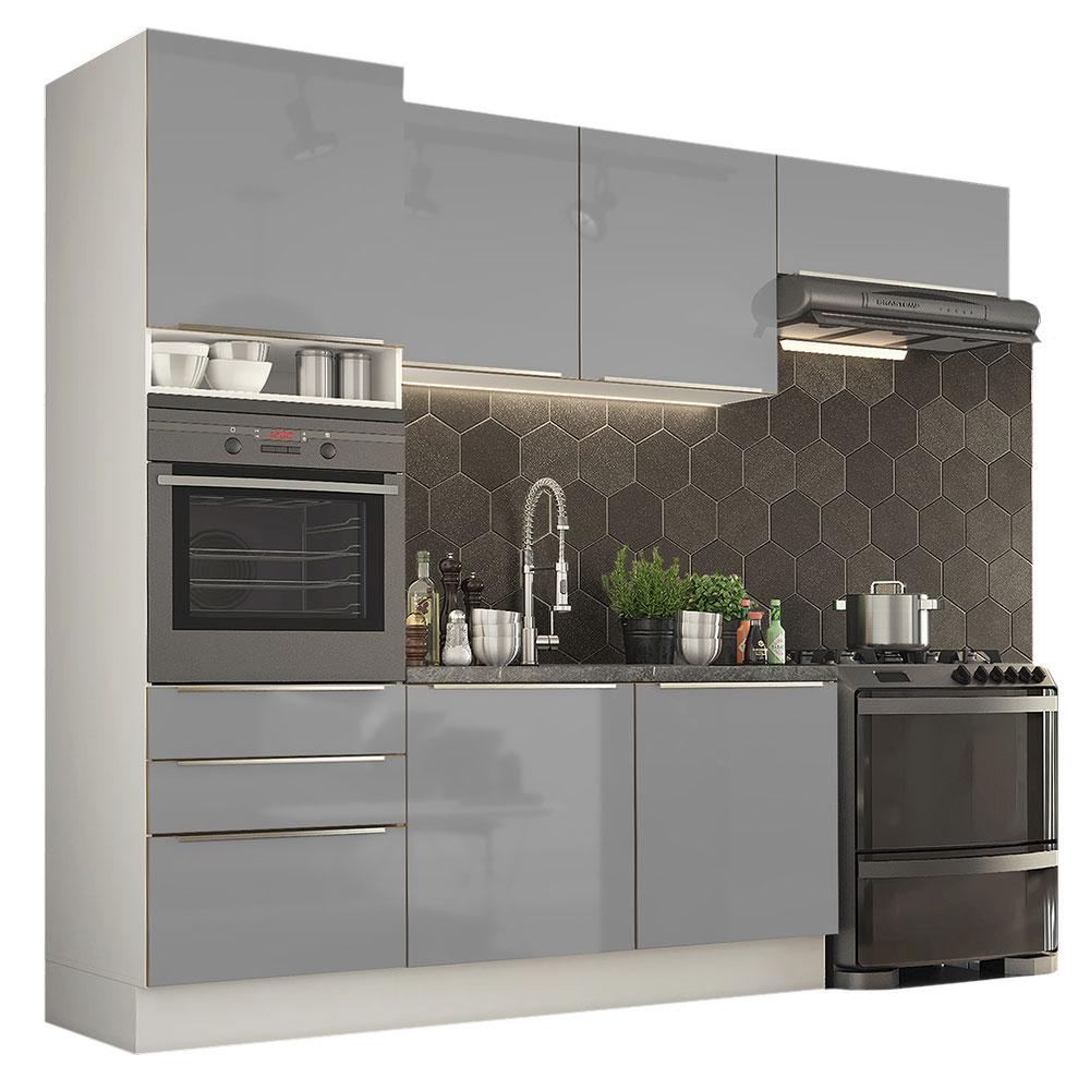 Cozinha Completa Madesa Lux com Armário e Balcão 6 Portas 3 Gavetas - Branco/Cinza
