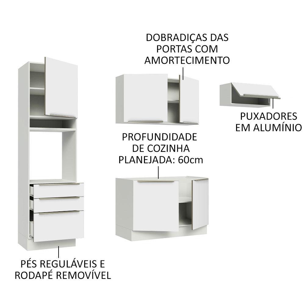 Cozinha Completa Madesa Lux com Armário e Balcão 6 Portas 3 Gavetas - Branco/Branco Veludo