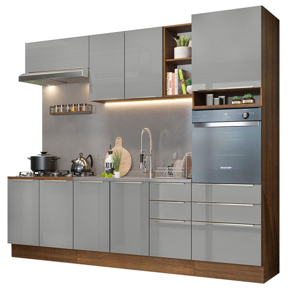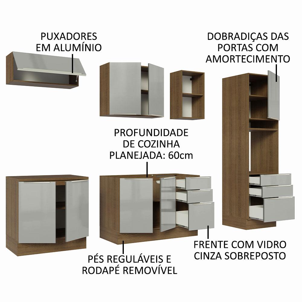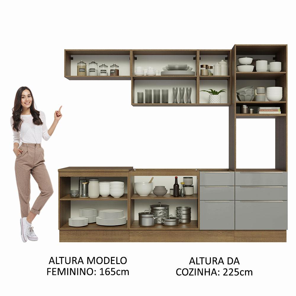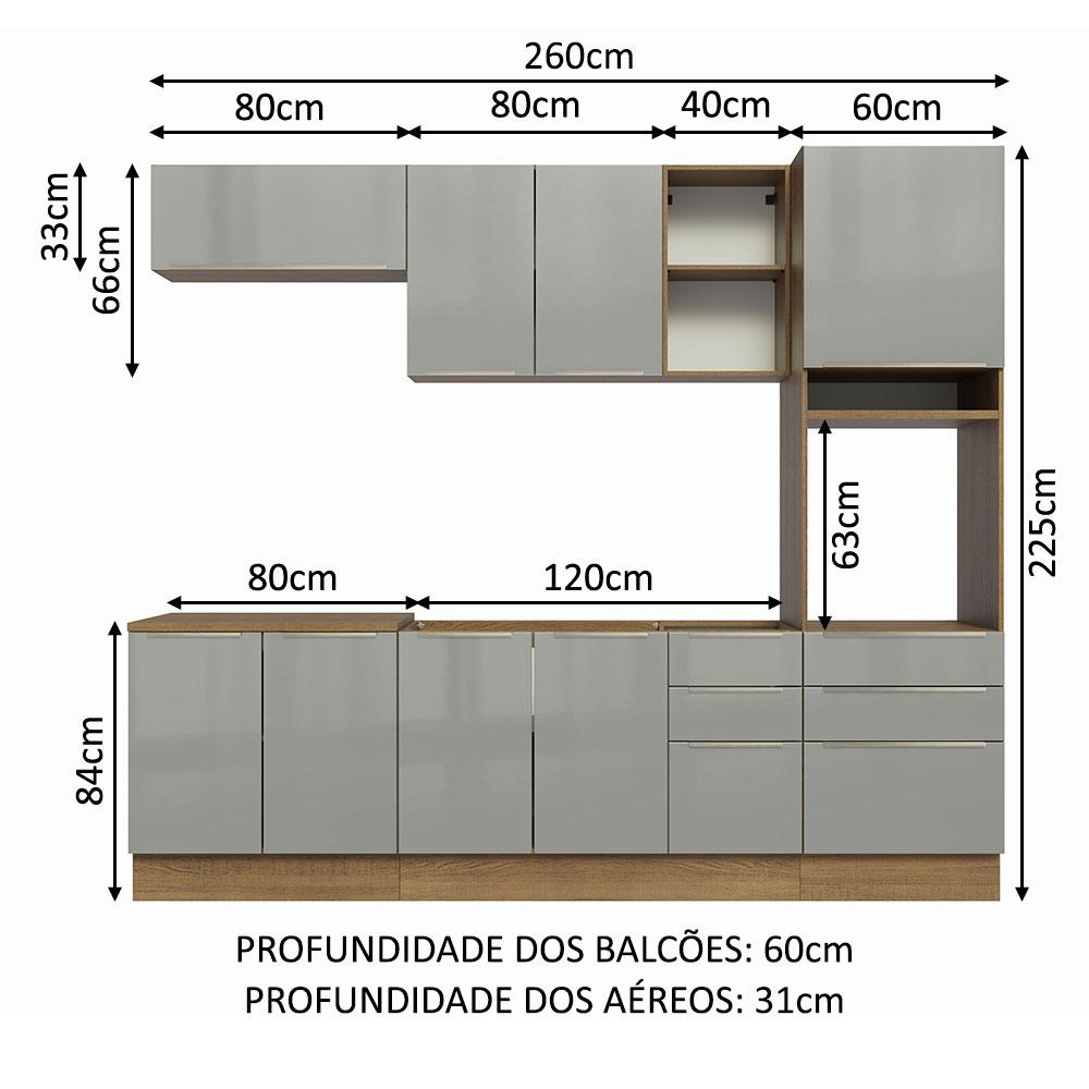 Armário de Cozinha Completa 260cm Rustic/Cinza Lux Madesa 08