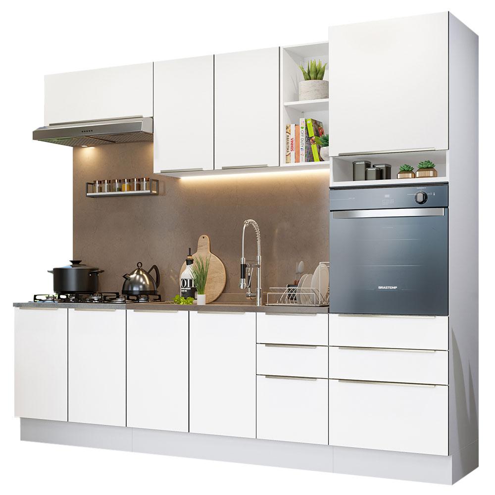 Armário de Cozinha Completa 260cm Branco Veludo Lux Madesa 08