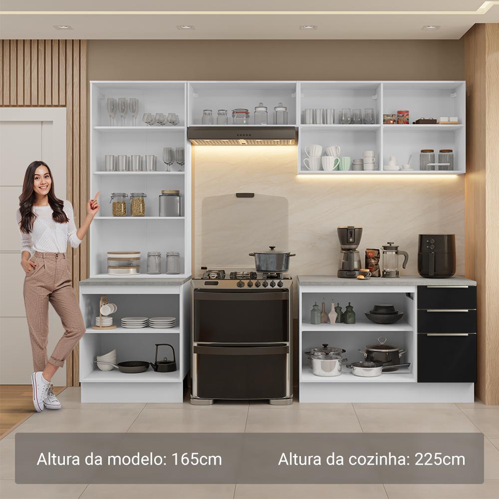 Armário de Cozinha Completa 270cm Branco/Preto Lux Madesa 04