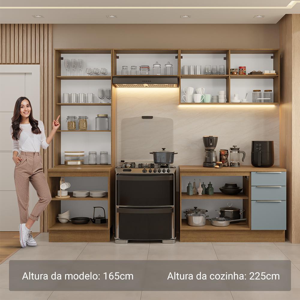 Armário de Cozinha Completa 270cm Rustic/Cinza Lux Madesa 04