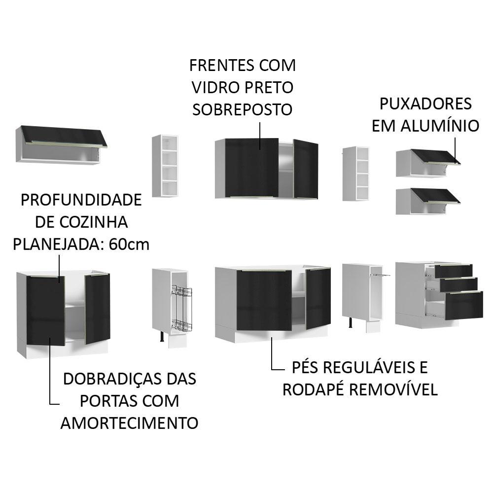 Armário de Cozinha Completa 300cm Branco/Preto Lux da Sabrina Madesa