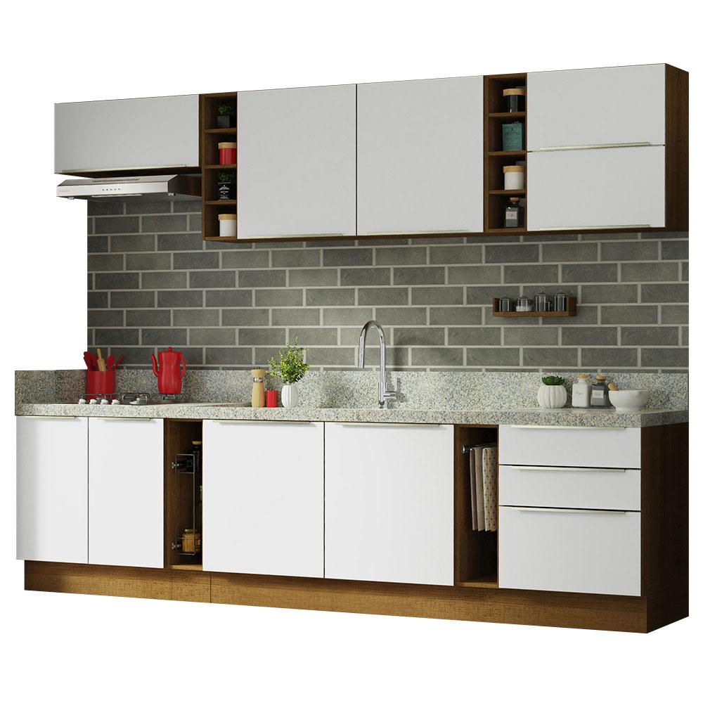 Armário de Cozinha Completa 300cm Rustic/Branco Veludo Lux da Sabrina Madesa