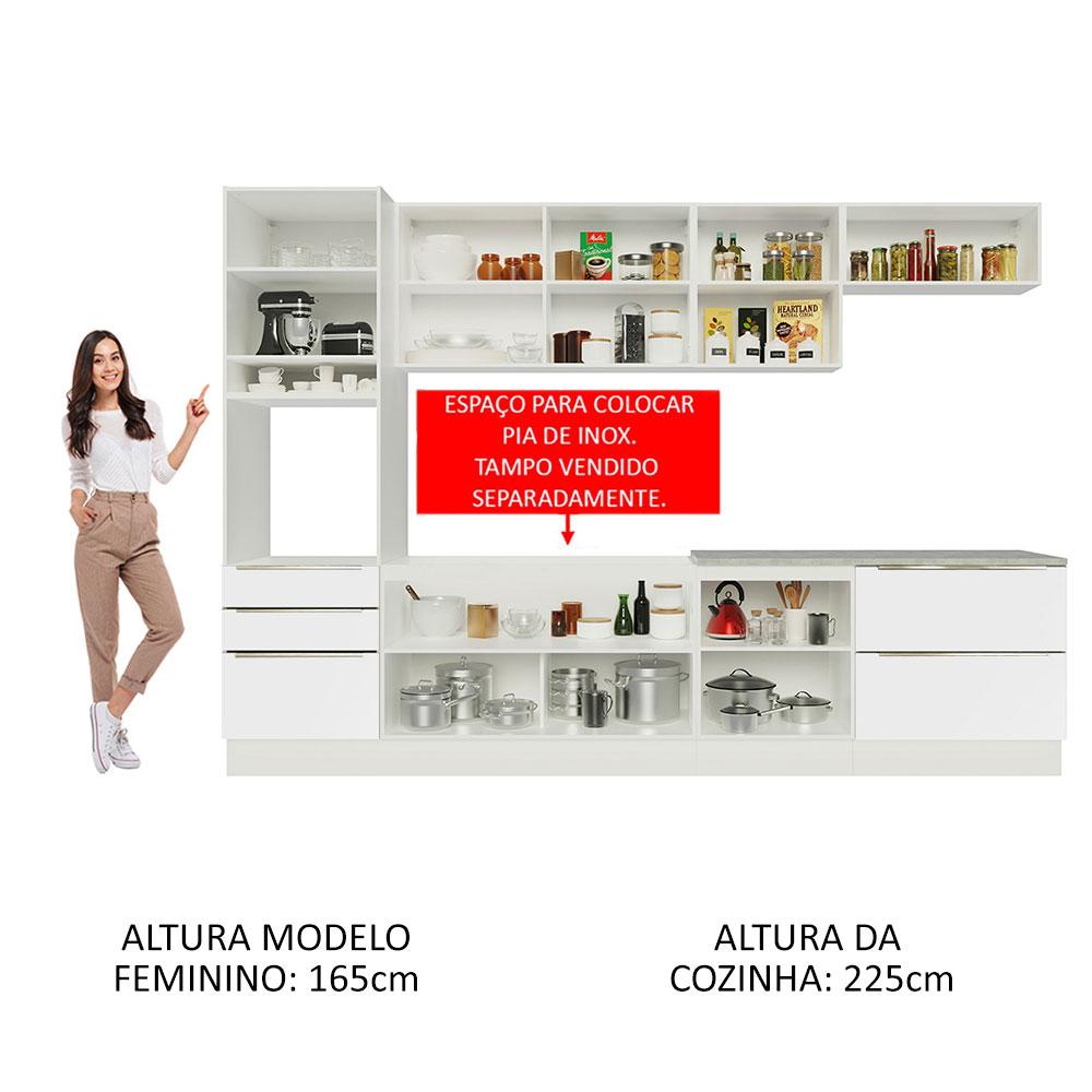 Cozinha Completa Madesa Lux 320004 com Armário e Balcão - Branco/Branco Veludo