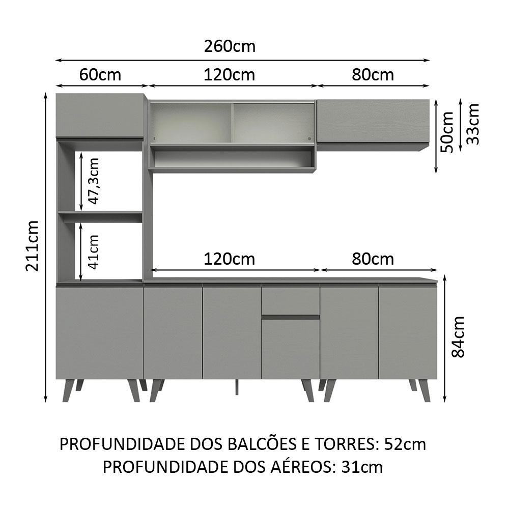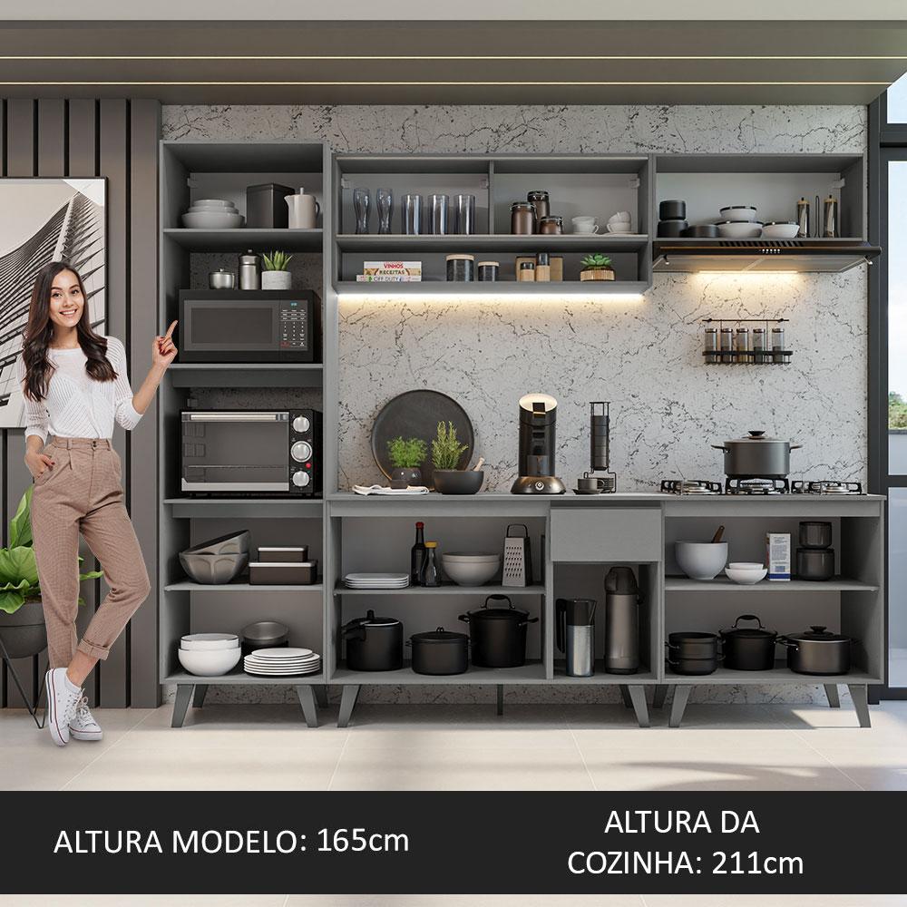 Armário de Cozinha Completa 260cm Cinza Nice Madesa 02
