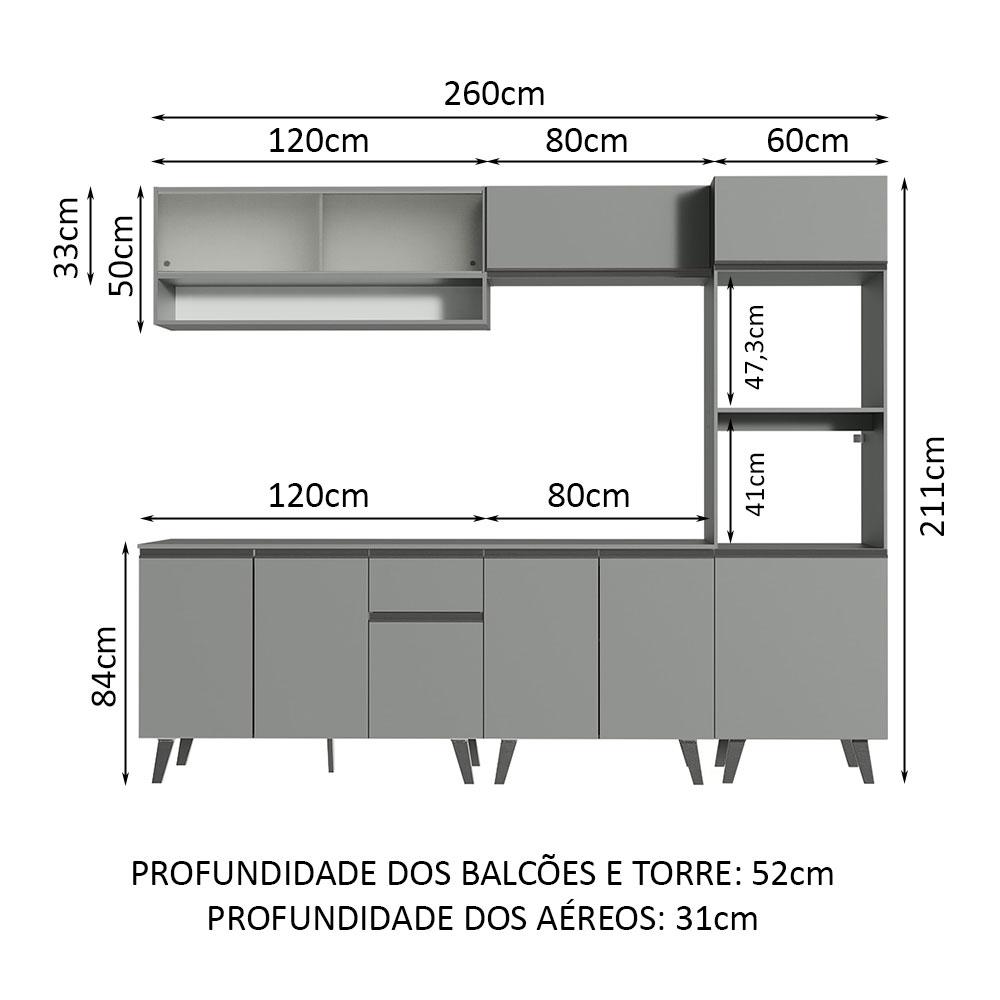 Armário de Cozinha Completa 260cm Cinza Nice Madesa 07
