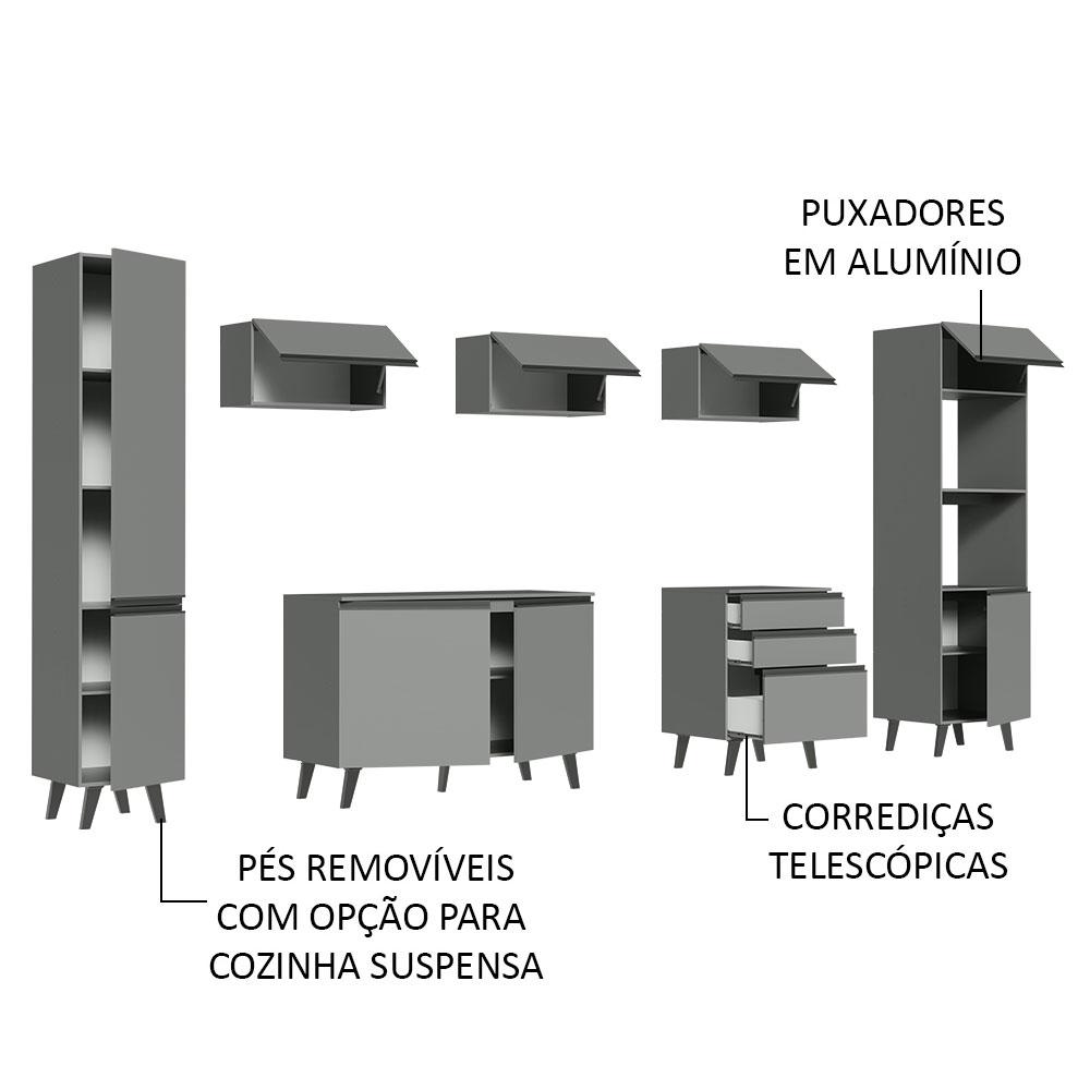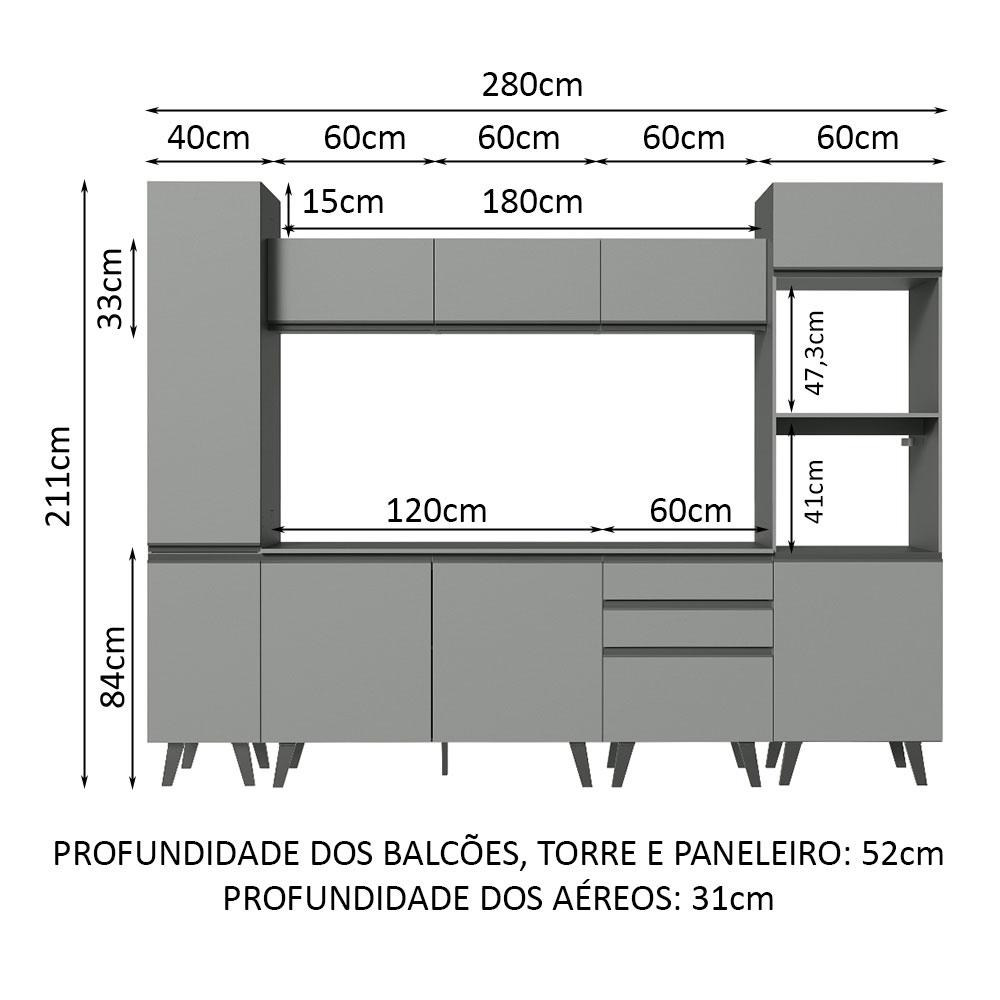 Armário de Cozinha Completa 280cm Cinza Nice Madesa 01
