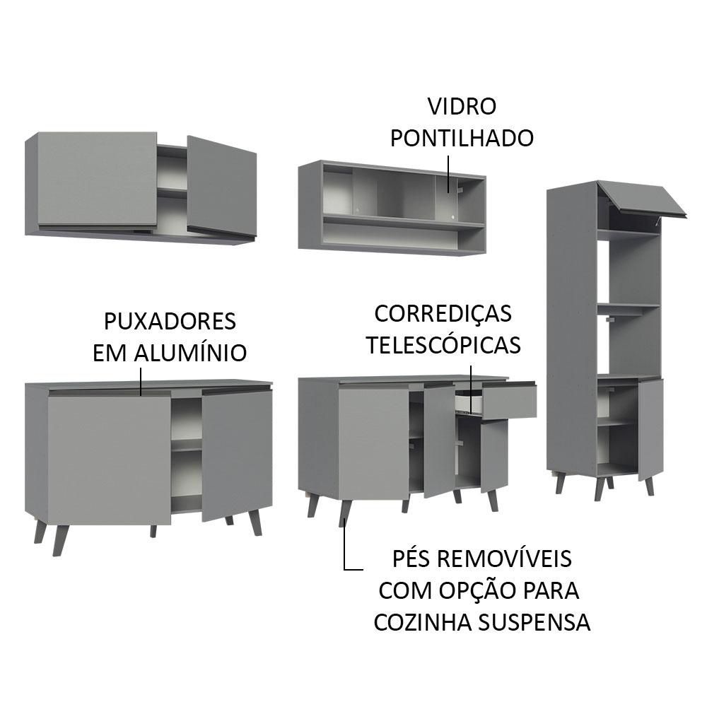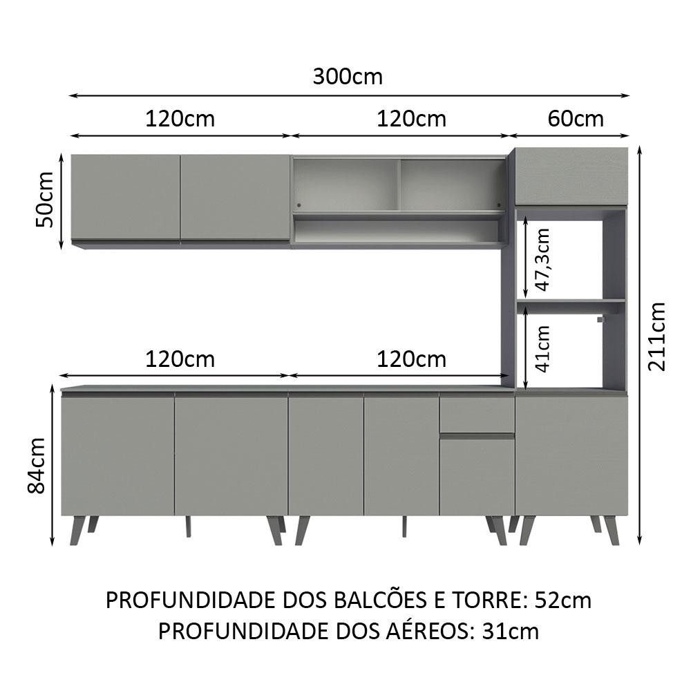 Armário de Cozinha Completa 300cm Cinza Nice Madesa 02