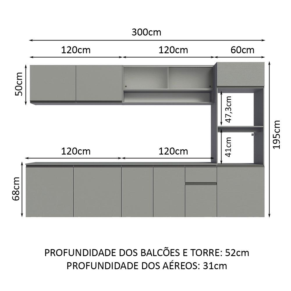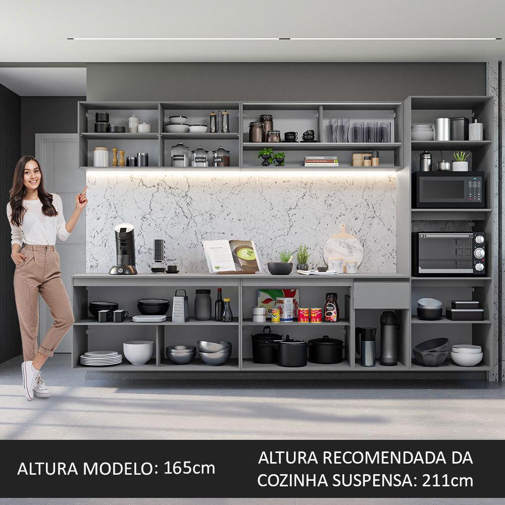 Armário de Cozinha Completa Suspenso 300cm Cinza Nice Madesa 04