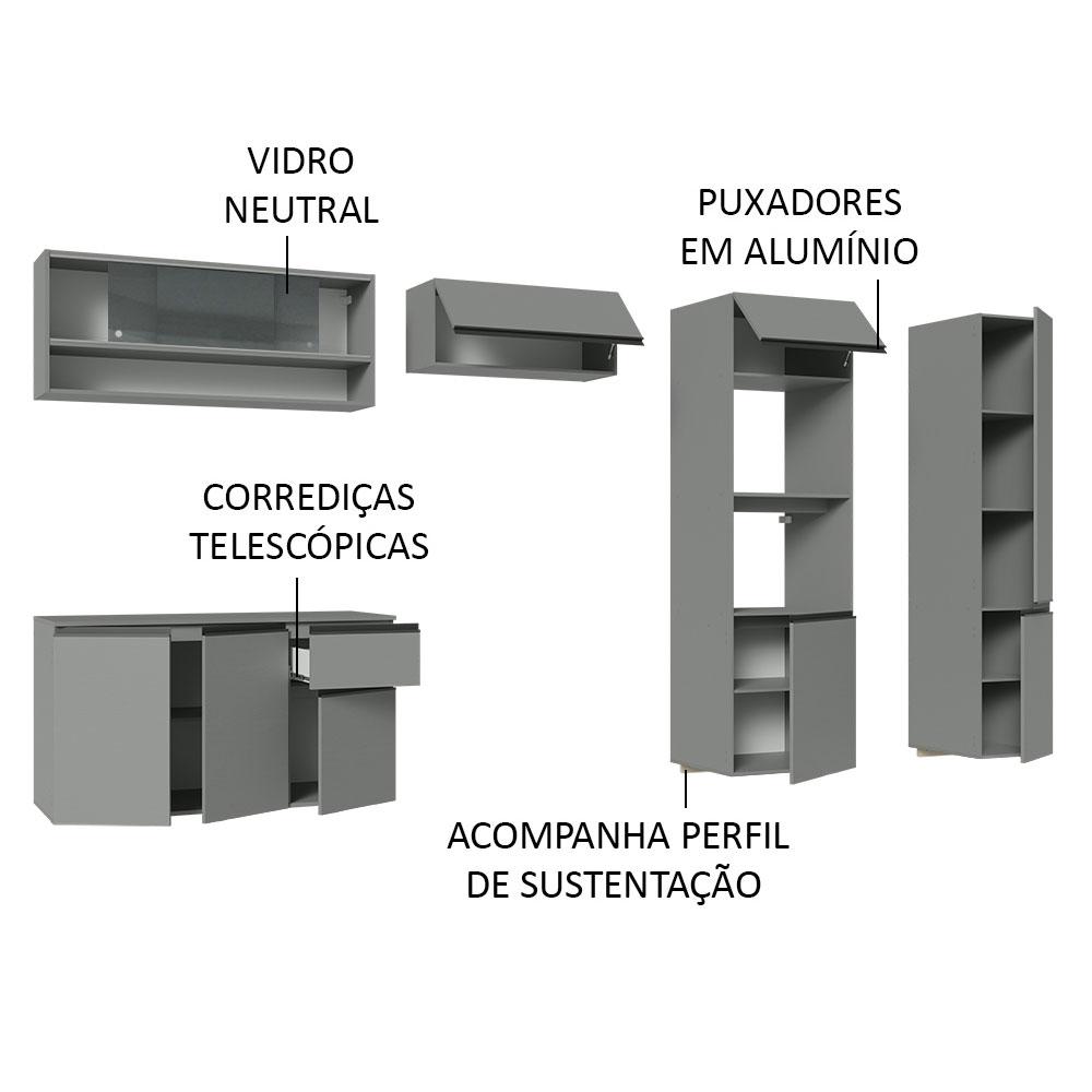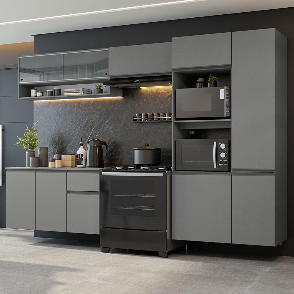 Armário de Cozinha Completa Suspenso 300cm Cinza Nice Madesa 07