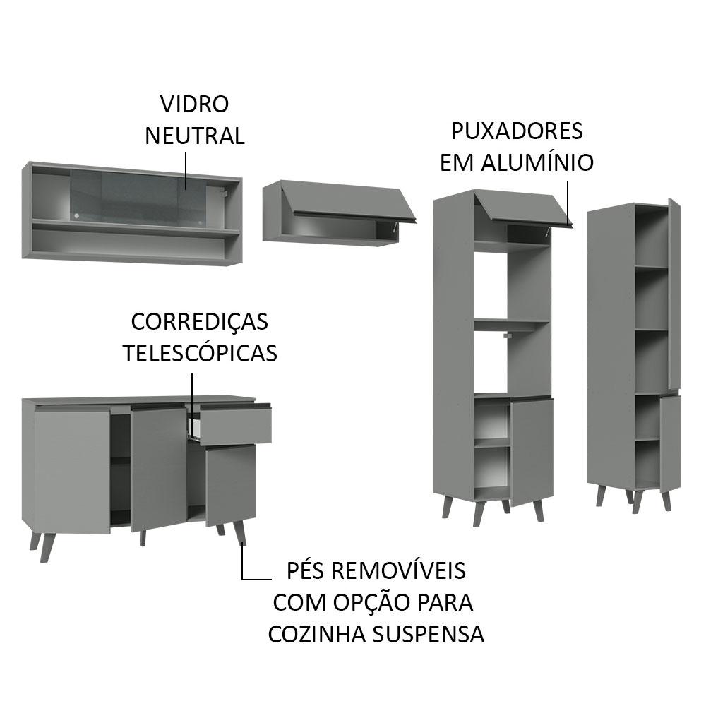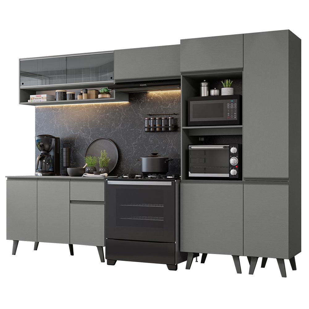 Armário de Cozinha Completa 300cm Cinza Nice Madesa 09