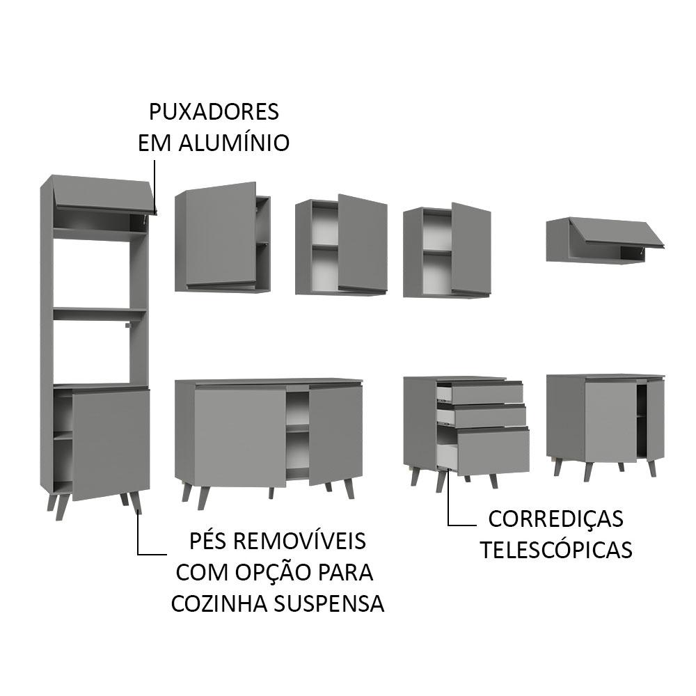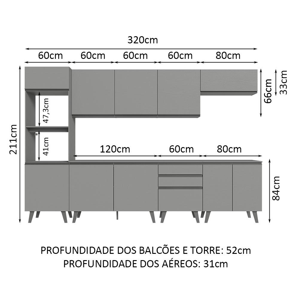Armário de Cozinha Completa 320cm Cinza Nice Madesa 06