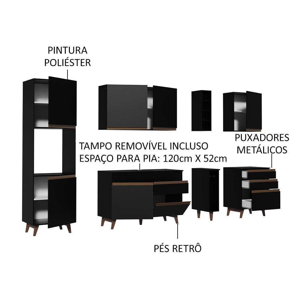 Cozinha Completa Madesa Reims 260005 com Armário e Balcão - Preto