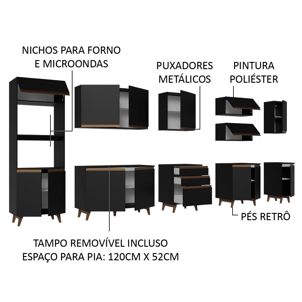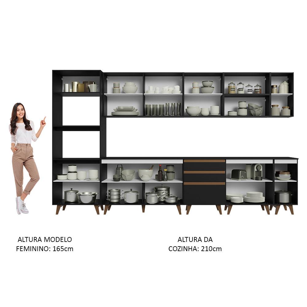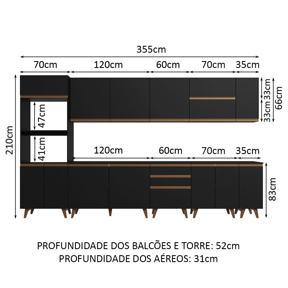Armário de Cozinha Completa 355cm Preto Reims da Sabrina Madesa