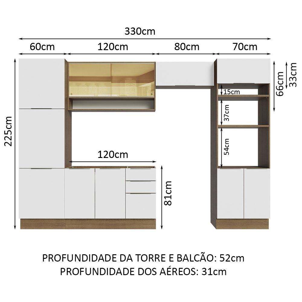 Armário de Cozinha Completa 330cm Rustic/Branco Stella Madesa 03
