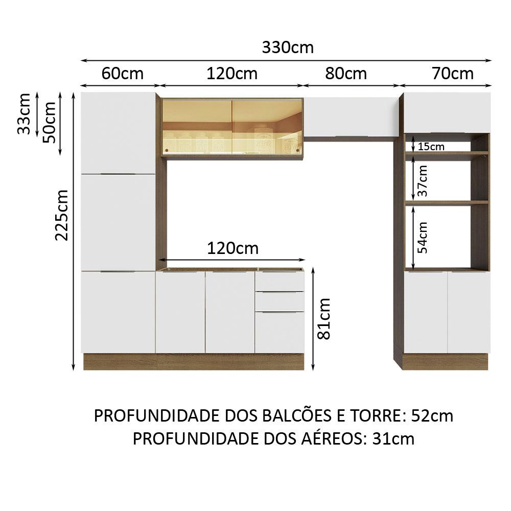 Armário de Cozinha Completa 330cm Rustic/Branco Stella Madesa 07