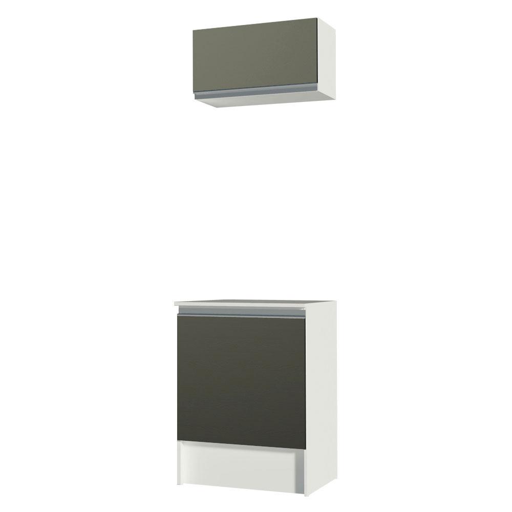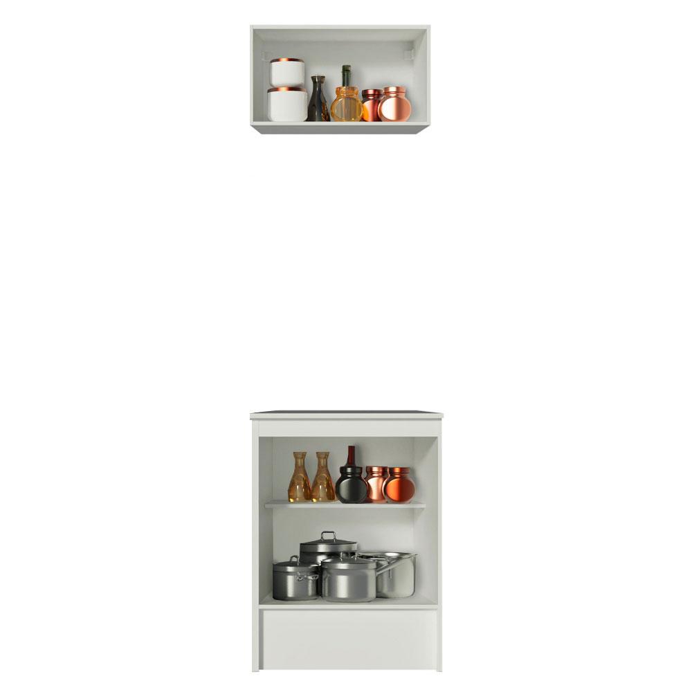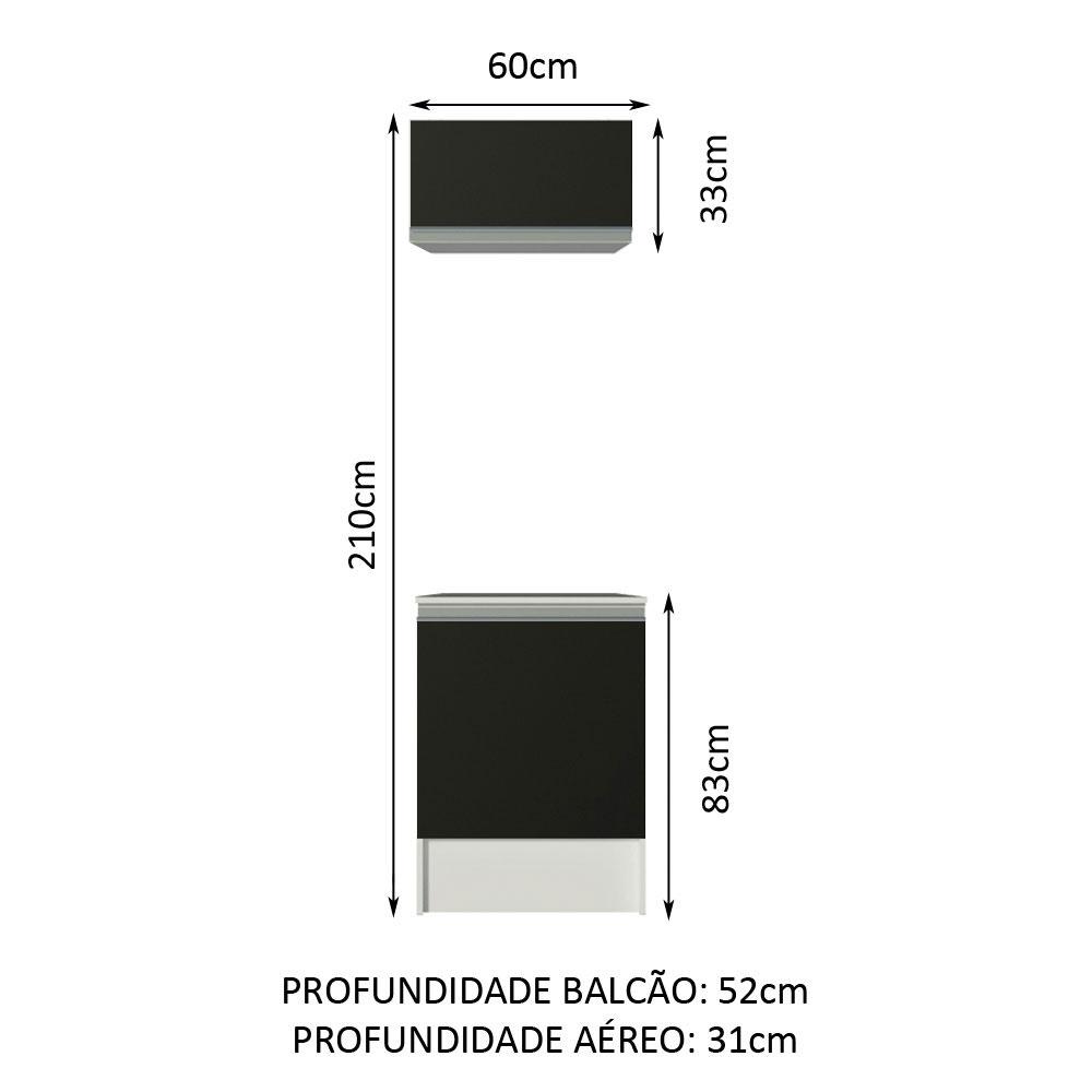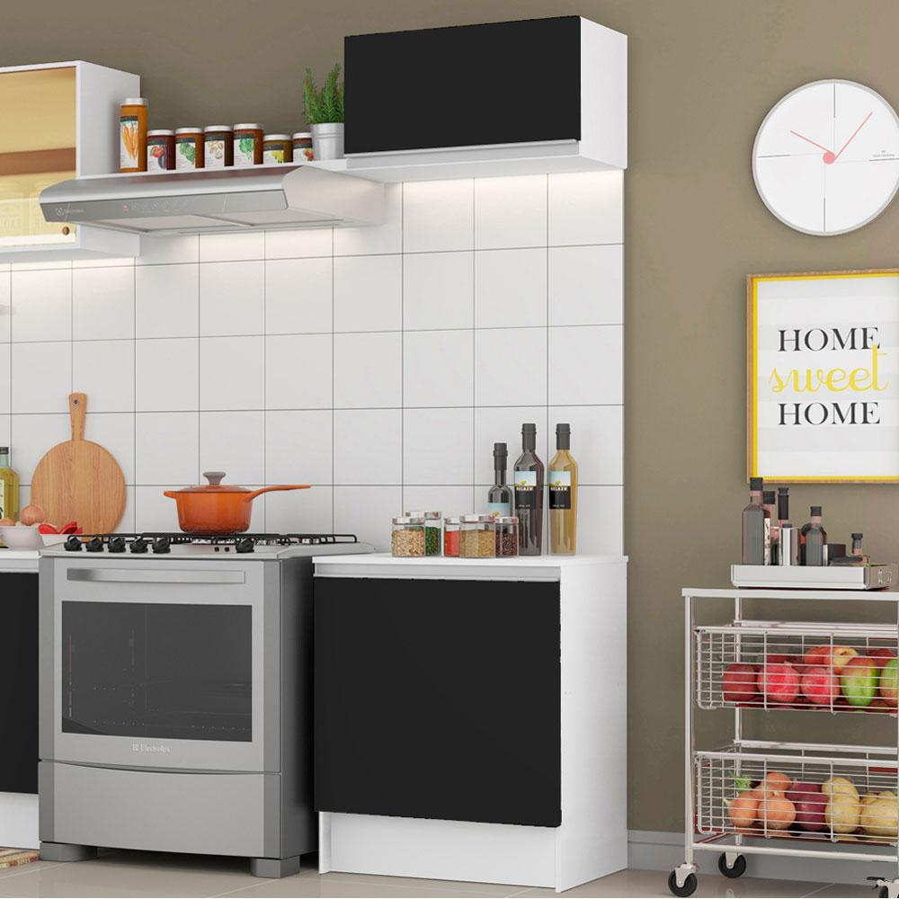 Kit Madesa Topazio 60 cm 2 Portas com Armário Aéreo e Balcão - Branco/Preto