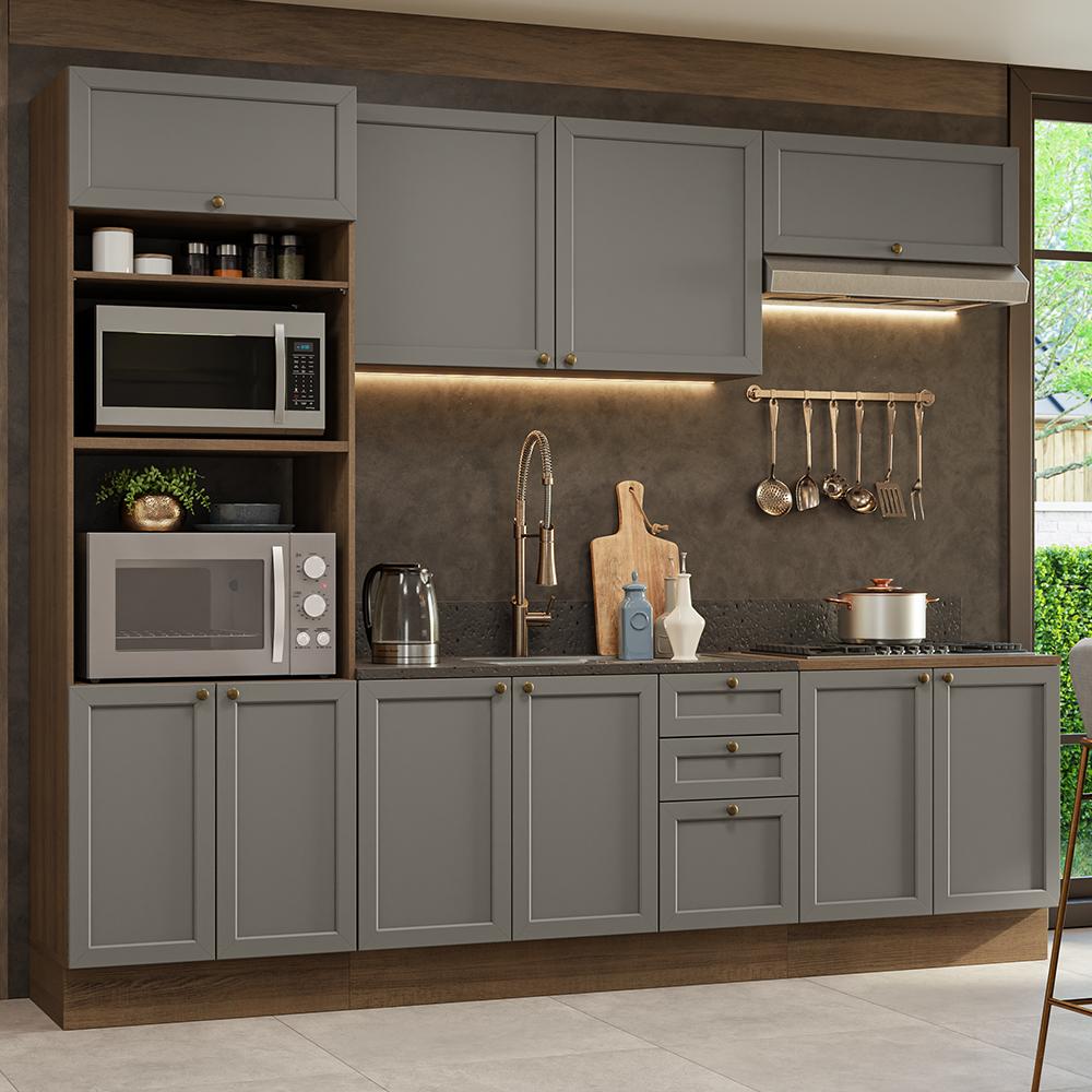 Armário de Cozinha Completa 270 cm Rustic/Cinza Vik Madesa 01