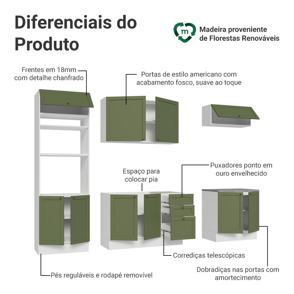 Armário de Cozinha Completa 270 cm Branco/Verde Vik Madesa 01